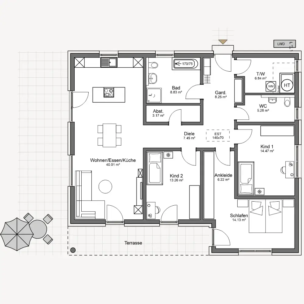 Die Architekten- und Planungsleistungen sind bei Büttner Massivhaus bereits im Festpreis enthalten. Dazu zählen durchdachte und funktionale Grundrisse, Perspektiven oder virtuelle 3D-Modelle, Bauantragspläne sowie Ausführungs- und Detailpläne. Auch die sorgfältige Bauleitung ist inklusive und sorgt für eine unkomplizierte und transparente Bauabwicklung.