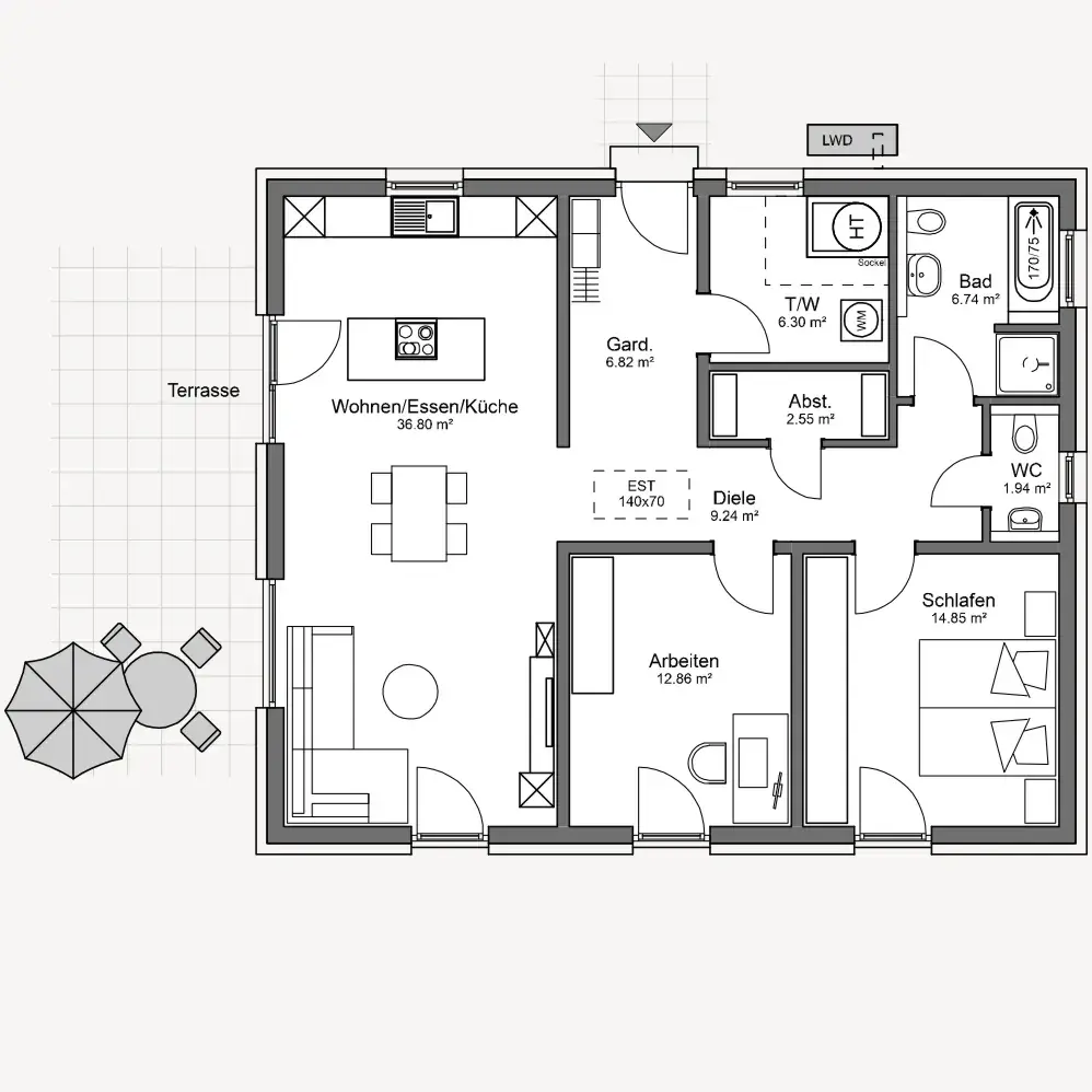 All in One – Ihr Zuhause aus einer Hand: Vom Grundstück bis zur fertigen Außenanlage bieten wir Ihnen ein komplettes Wohnerlebnis in bester Büttner-Qualität.