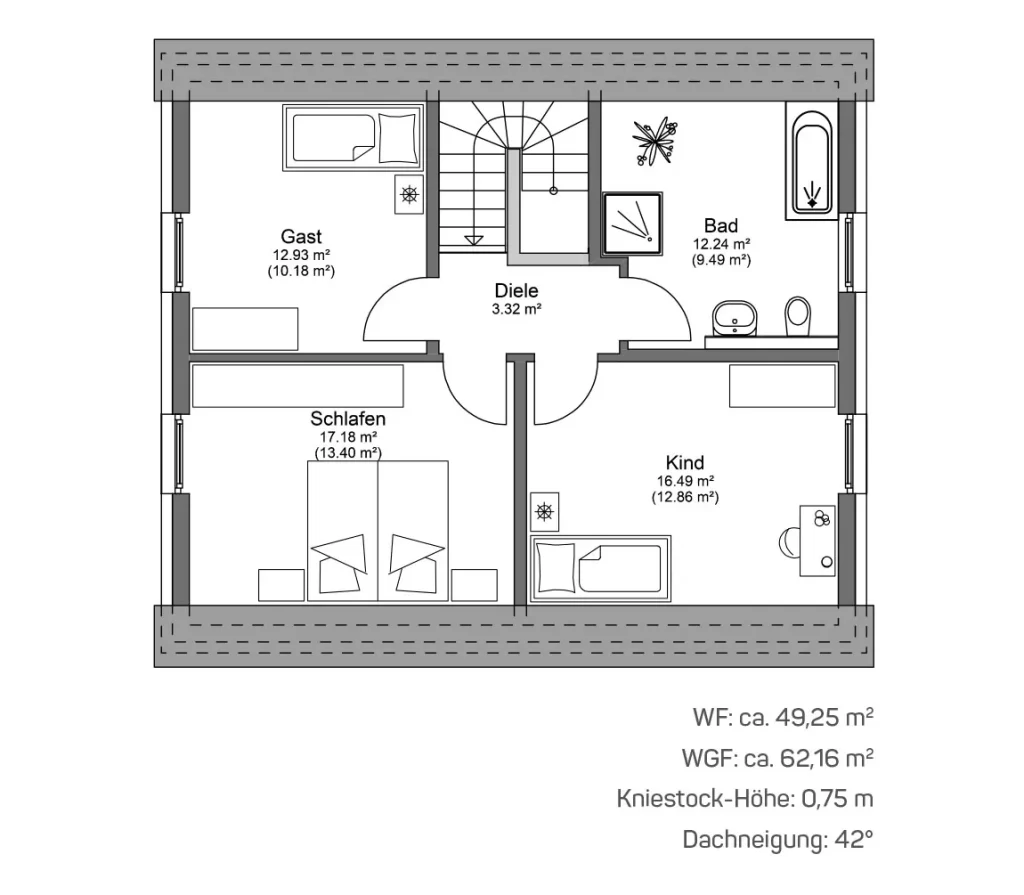 Für alle, die davon träumen, ein Singlehaus schlüsselfertig zu bauen, ist SIMPLY S genau richtig. Bei allen SIMPLY HOME Massivhäusern sind die Grundrisse bereits fertig geplant. Damit Ihr zukünftiges Massivhaus gut zu Ihrem Grundstück passt, ist der Grundriss auch in gespiegelter Ausführung möglich. Durch das überzeugende Raumkonzept sparen Sie sich Zeit, Geld und Nerven beim Bau Ihres Singlehauses.