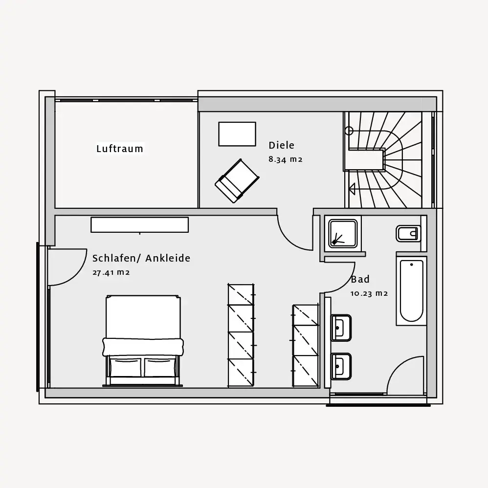 Die ideale Lösung für Singles oder Paare ohne Kinder die moderne Wohnfreiheit schätzen. Das offene Raumkonzept schafft Weite und lädt zur kreativen Gestaltung ein. Die Galerie verbindet beide Etagen harmonisch und bietet zusätzlichen Wohn oder Arbeitsraum. Großzügiges Schlafen mit Ankleide und ein komfortables Bad runden dieses stilvolle Zuhause perfekt ab.