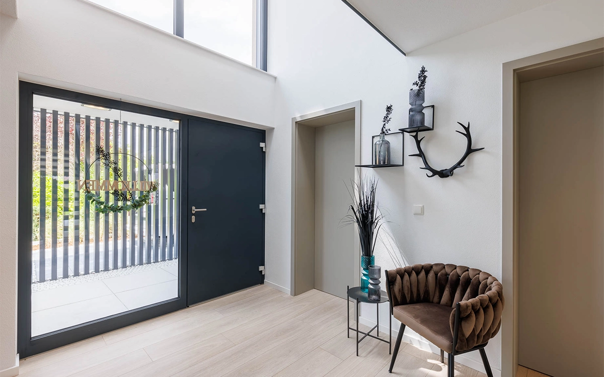 Vision M bietet Ihnen die Möglichkeit, die Grundrisse flexibel zu gestalten und so individuell an Ihre Bedürfnisse anzupassen. Lassen Sie sich von der durchdachten Architektur und den Details des Musterhauses inspirieren. Dieses visionäre Konzept verbindet modernes Design mit architektonischem Anspruch – und das alles zum Festpreis!