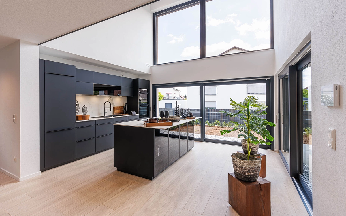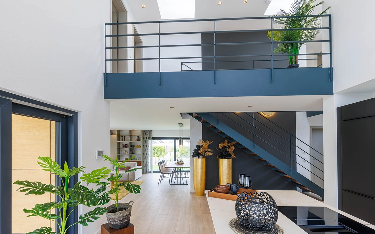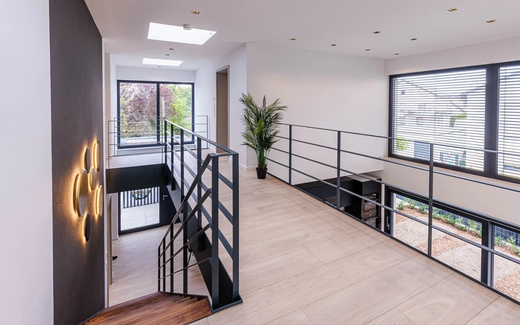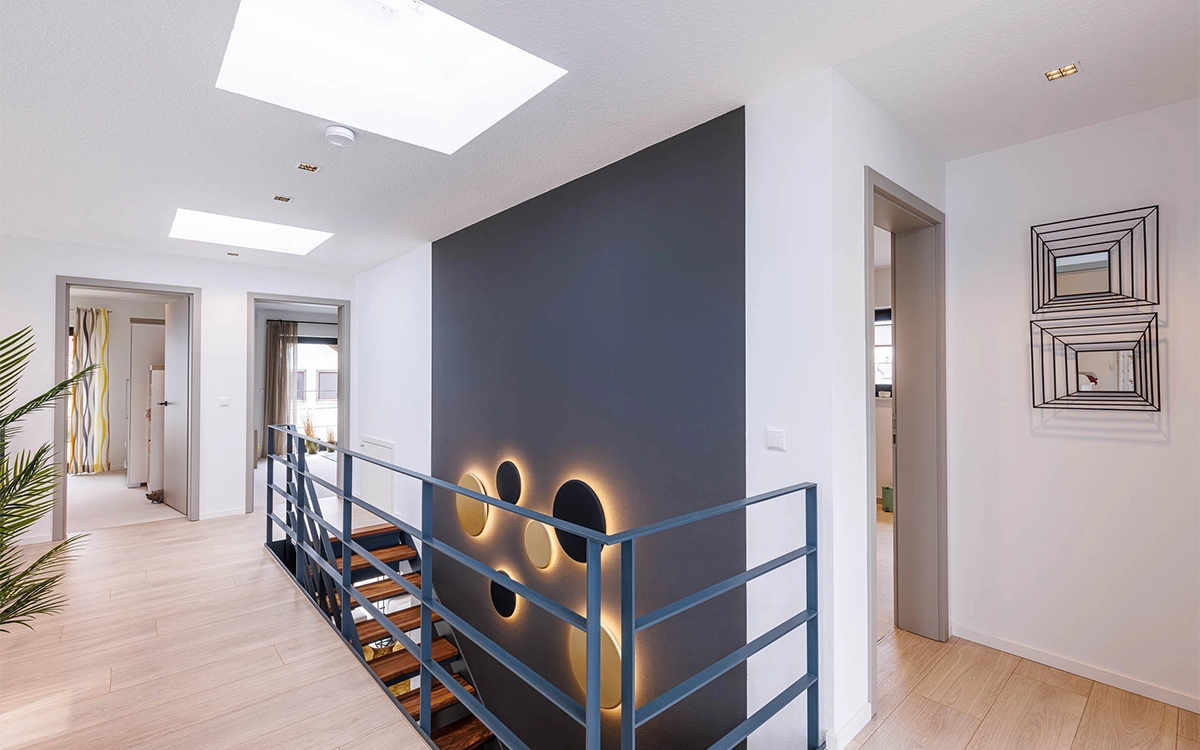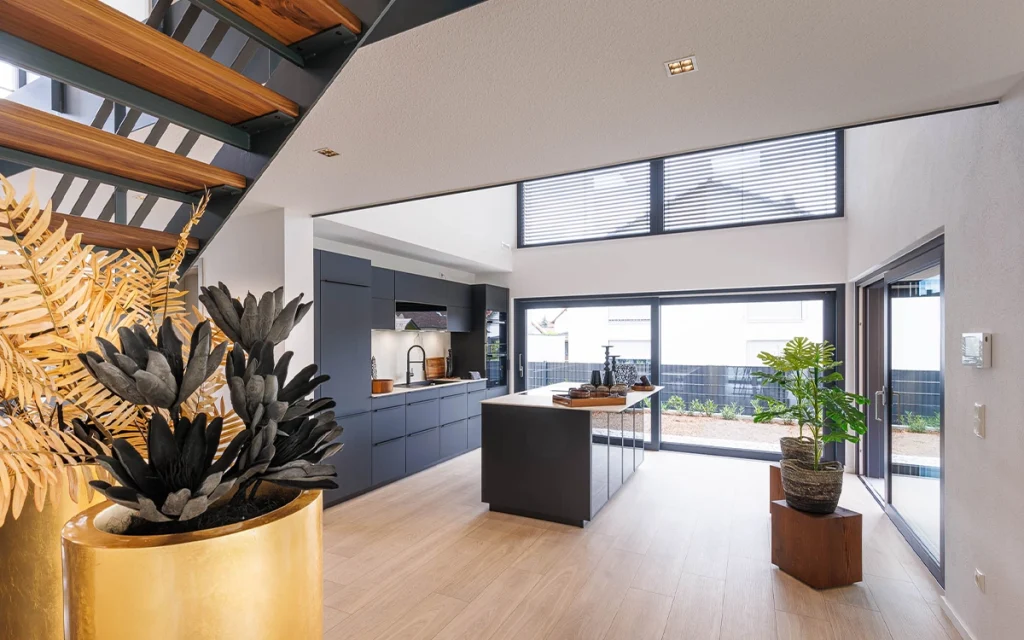Das Musterhaus Vision M beeindruckt mit einem großzügigen, offenen Wohnbereich, zwei Kinderzimmern, zwei Bädern und beeindruckenden Lufträumen. Erleben Sie das exklusive Raumgefühl, perfekt kombiniert mit höchster Energieeffizienz.